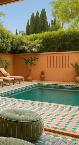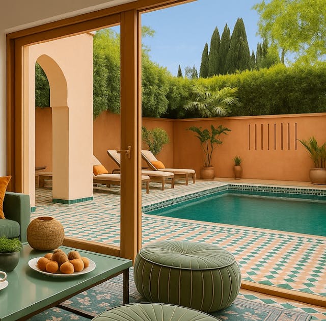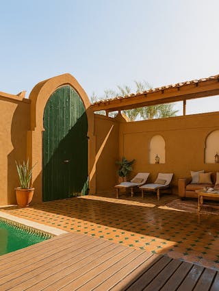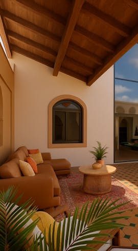 Un luxe rare — Terrasse ombragée,salon marocain, piscine privée… Chaque ryad offre une intimité totale, pour vivre le soleil marocain à votre rythme, loin des regards.