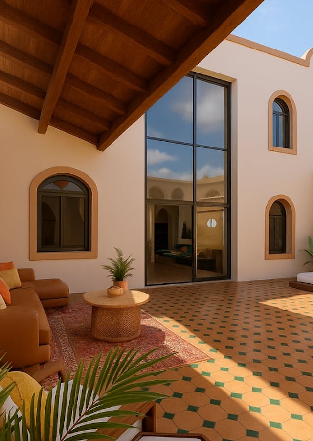 Entrez dans l’univers intime de votre ryad, entre ombre, fraîcheur et raffinement marocain.