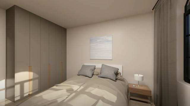 Depuis la mezzanine, la chambre s’ouvre en hauteur. Le coin nuit combine élégance et sérénité : volumes apaisants, rangements discrets, salle de bain épurée. Un vrai refuge, pensé pour s'apaiser.
