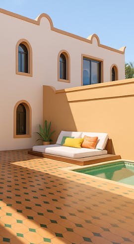Spaces designed for relaxation, sunlight, and the gentle Moroccan way of life. Every detail has been imagined so you feel at home from the very first moment.